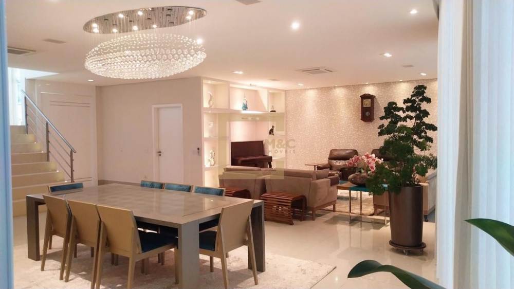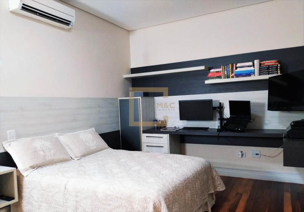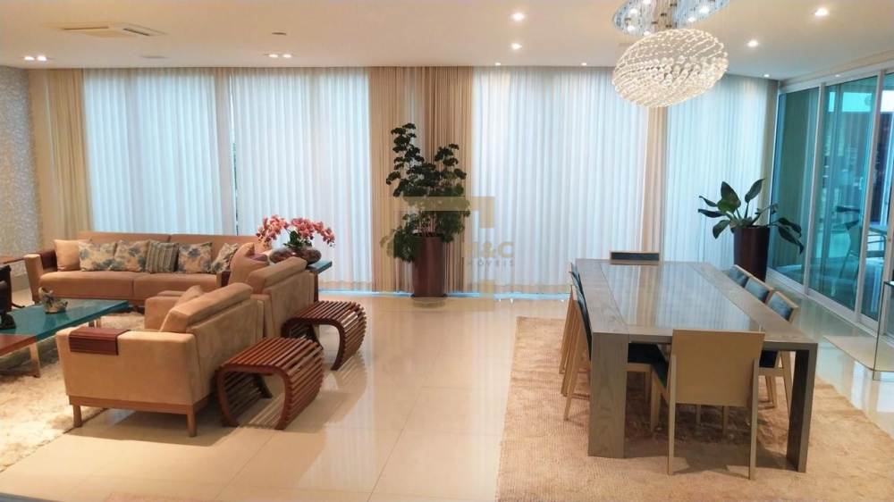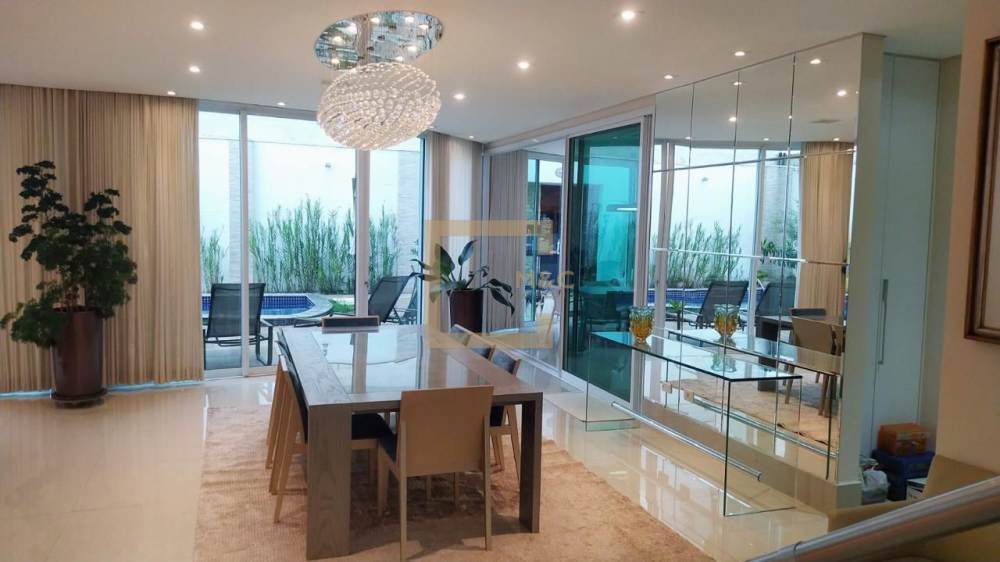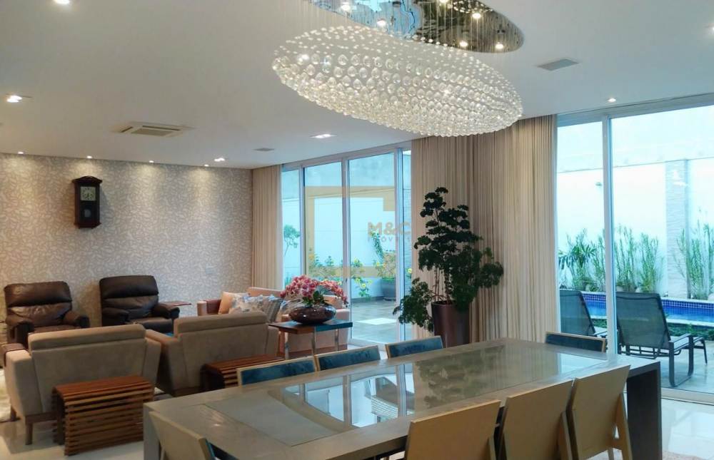 Casa semi mobiliada com 5 suítes, com varandas, a master com hidro, 1 suíte no térreo e a master de 56 m² com escritório, secador de toalhas.
