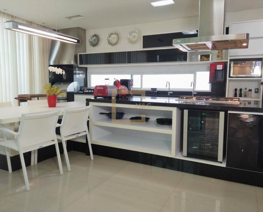 Home Theater com lareira . Amplo living com luminosidade natural, totalmente integrado aos ambientes . Cozinha equipada, espaço gourmet com churrasqueira Home Grill . Som ambiente nas áres sociais .