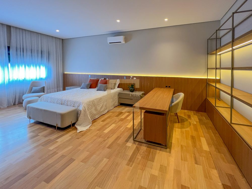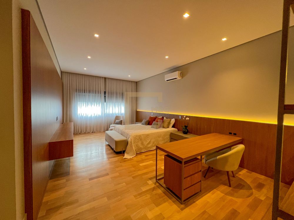 Mansão de altíssimo padrão, projetada para ser funcional, a planta foi bem planejada para aproveitar bem os espaços, integrando todos os ambientes e deixando-os modernos e amplos.