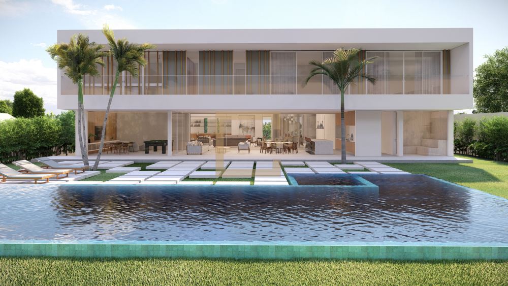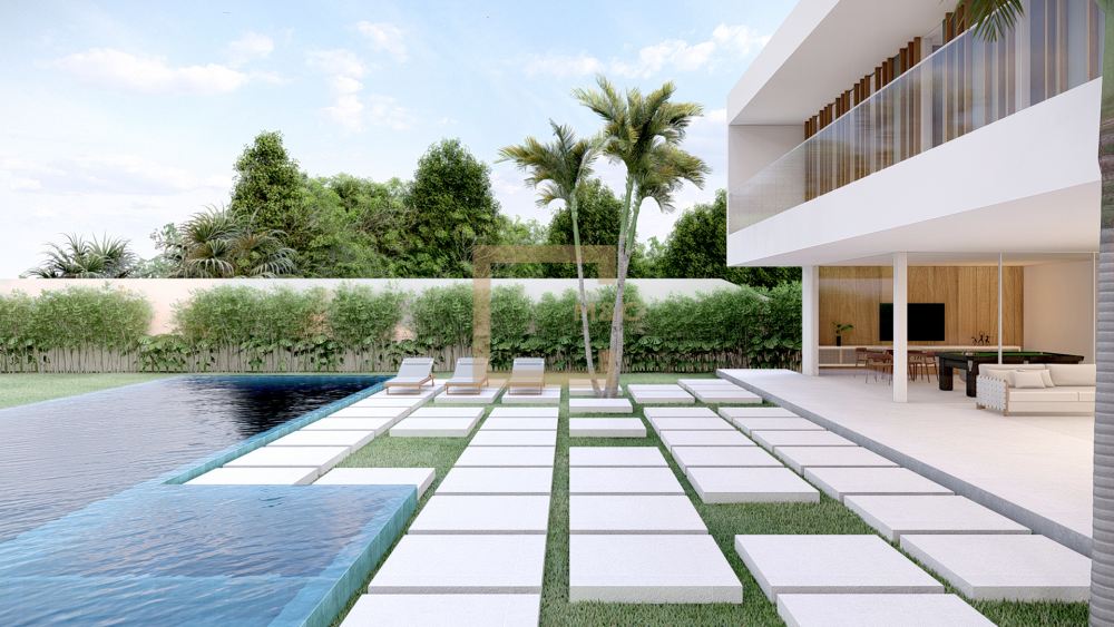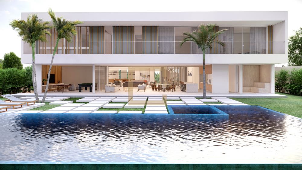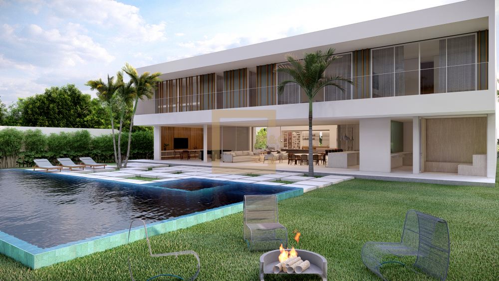 Descubra uma casa espetacular, completamente mobiliada, que exibe um projeto moderno com linhas retas e acabamentos de alto padrão.