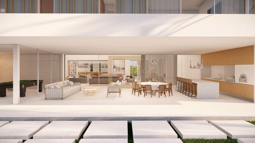 Cada espaço é um exemplo de requinte, O living espaçoso se integra harmoniosamente à área gourmet bem equipada, promovendo um ambiente ideal para entretenimento e convívio social.