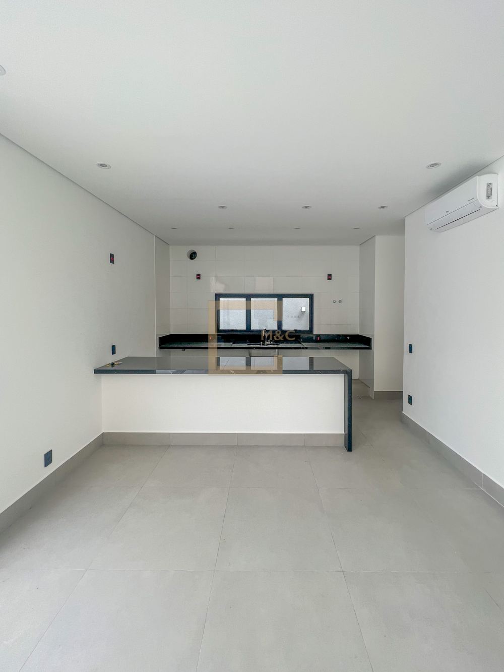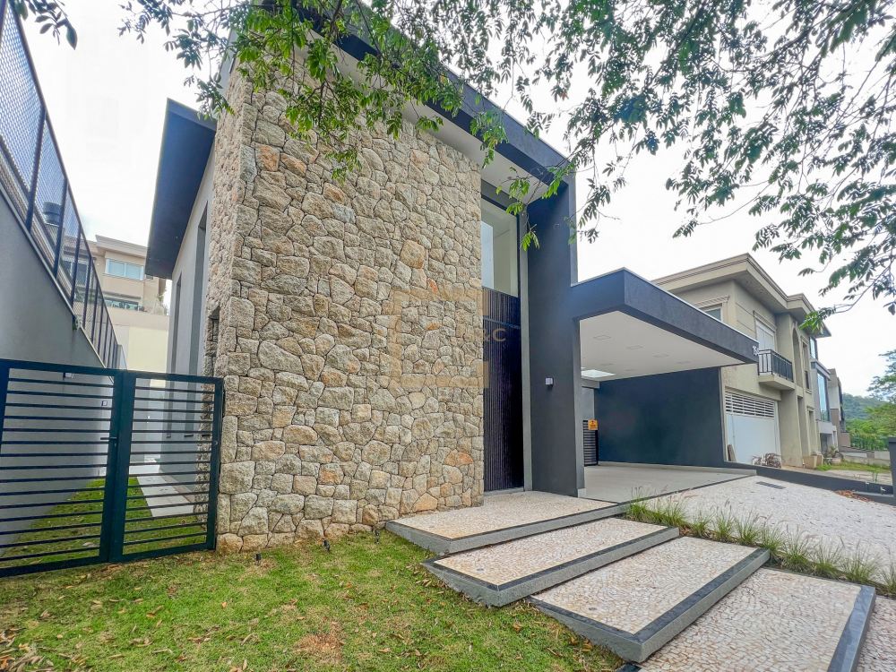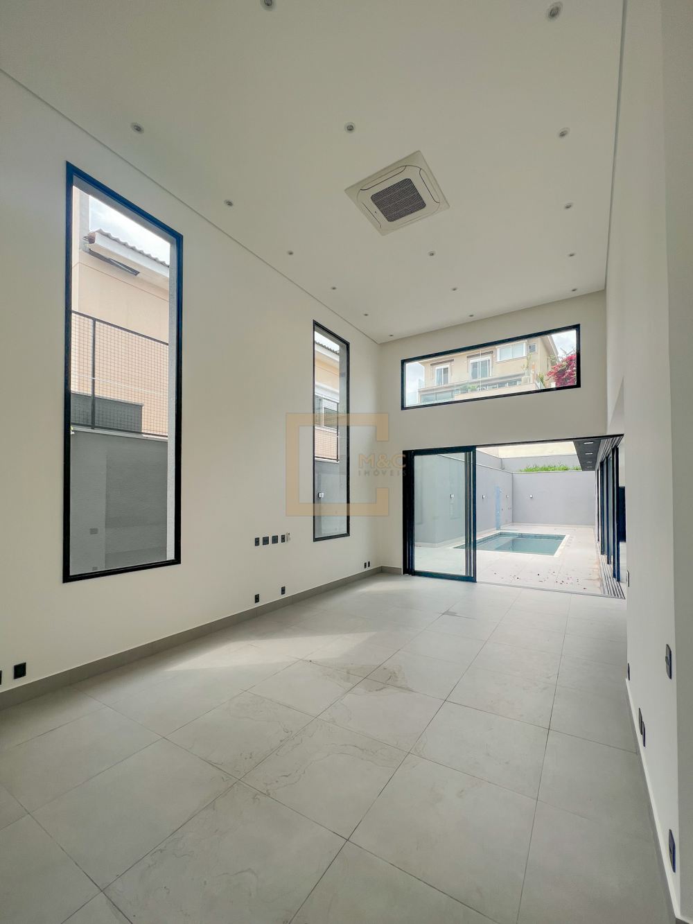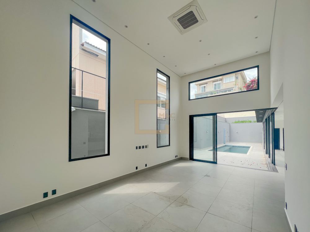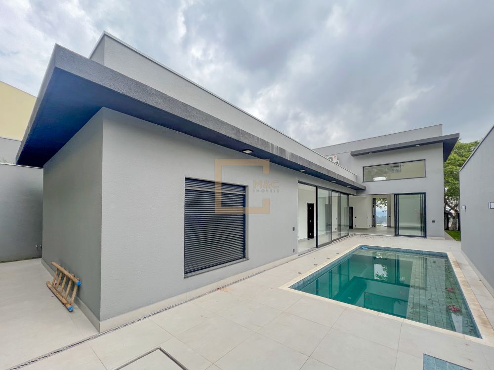 Nova residência térrea, localizada em um condomínio de excelência, construída com materiais de alto padrão, apresentando um design contemporâneo e uma distribuição interna muito eficiente.