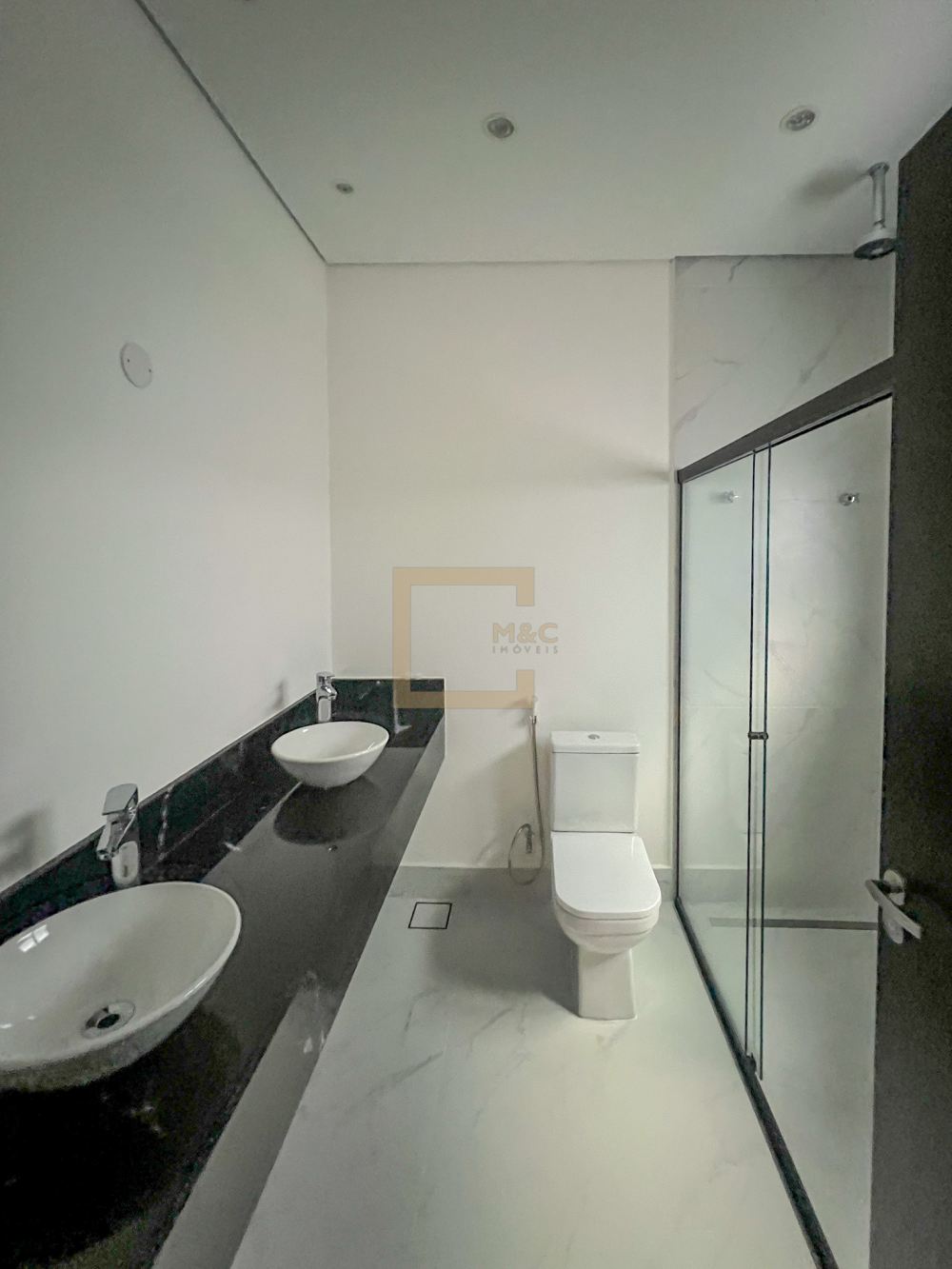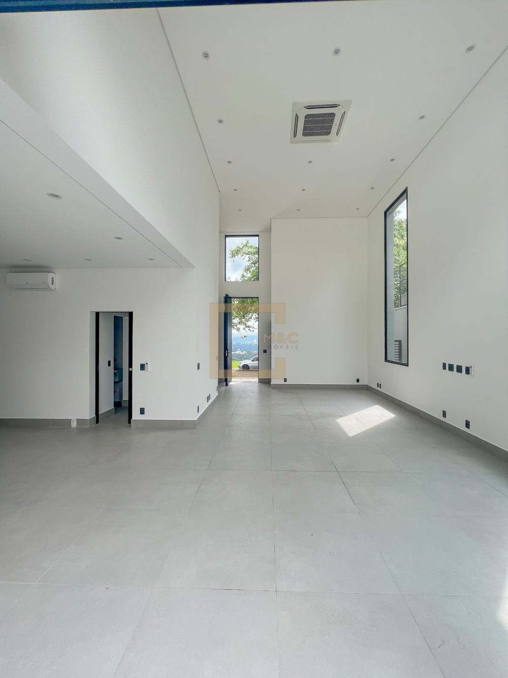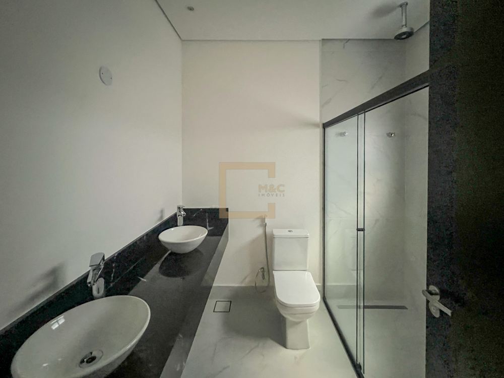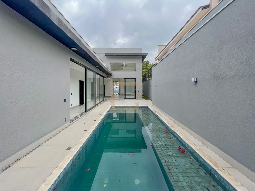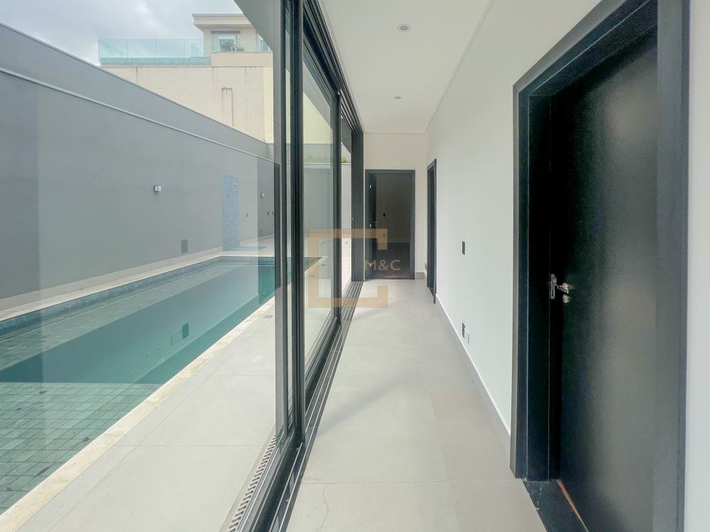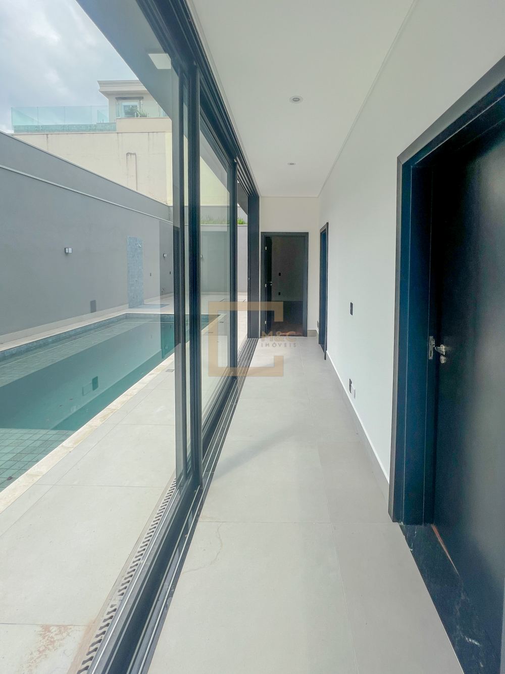 Nova residência térrea, localizada em um condomínio de excelência, construída com materiais de alto padrão, apresentando um design contemporâneo e uma distribuição interna muito eficiente.