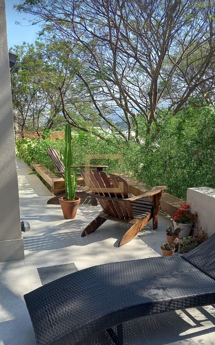 Terraço amplo com área gourmet (fogão a lenha e lareira), mesa com 6 lugares e lounge e spa com aquecimento.